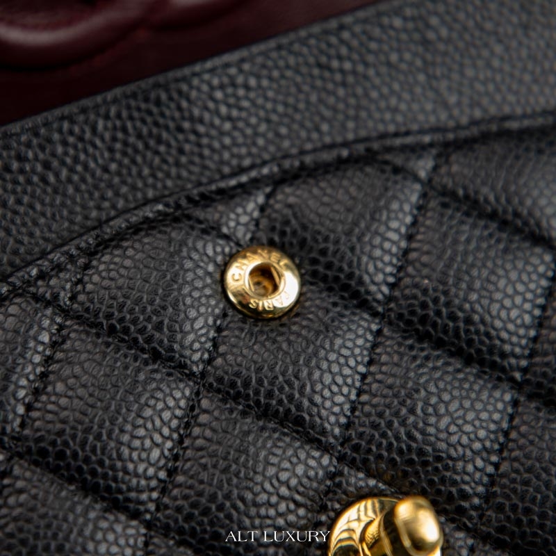 Tình trạng: 96% Rất mới – da caviar căng đẹp, góc cạnh sắc nét, hardware vàng sáng bóng
