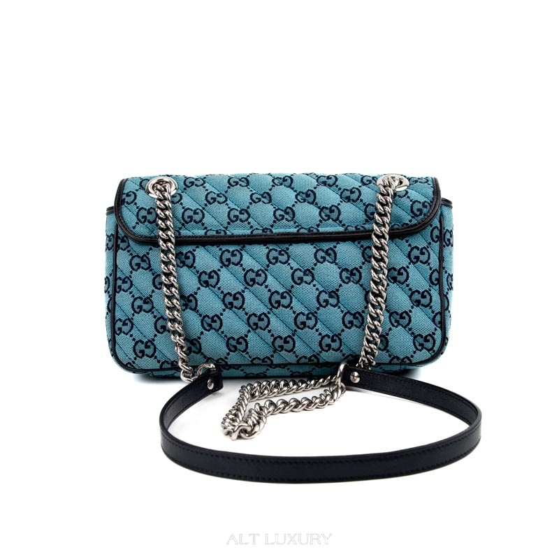 Chiếc GG Marmont Flap Bag Diagonal Quilted GG Canvas Small là biểu tượng của phong cách sang trọng cổ điển pha nét trẻ trung của nhà mốt Gucci.