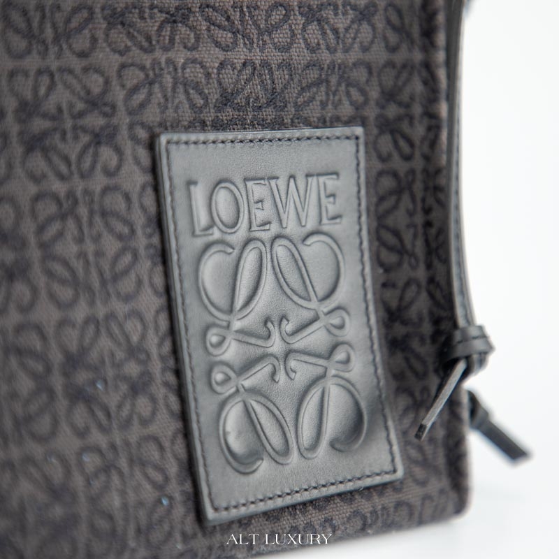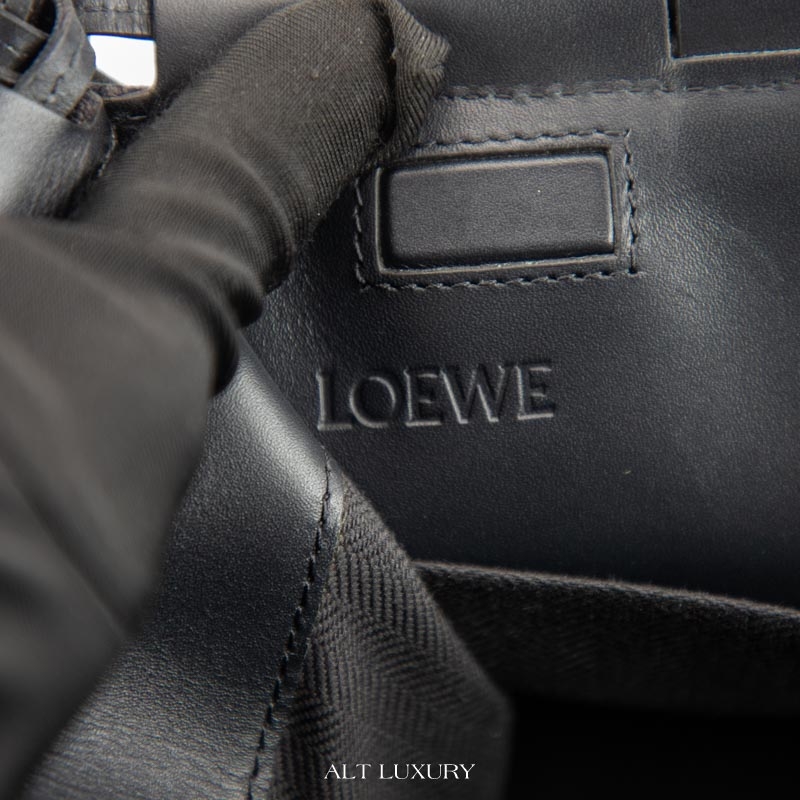 Chất liệu da bê cao cấp kết hợp canvas giúp túi nhẹ, dễ bảo quản và có độ bền cao. Gam màu đen sang trọng dễ phối cùng mọi outfit, từ công sở đến dạo phố. Logo Loewe được dập nổi tinh xảo ở góc da – chi tiết nhận diện nhẹ nhàng nhưng đầy đẳng cấp.