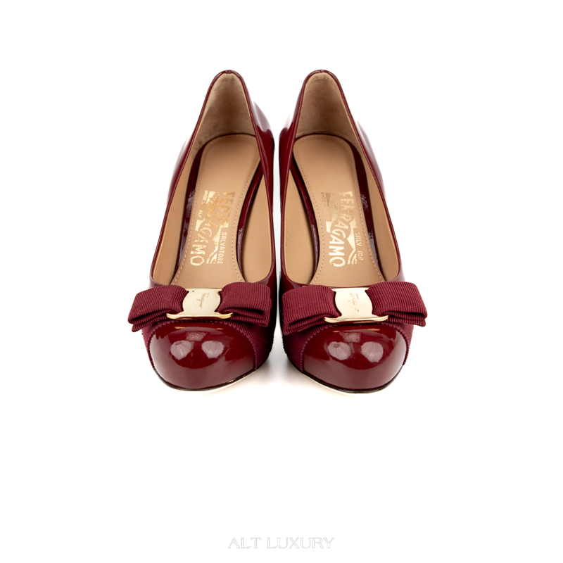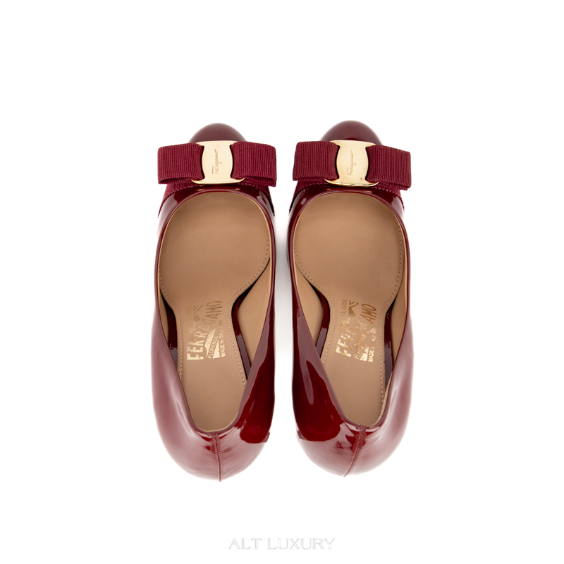 Salvatore Ferragamo Vara Bow Burgundy là biểu tượng của sự thanh lịch Ý cổ điển, ra đời từ những năm 1970 và được hàng triệu phụ nữ trên thế giới yêu thích. Thiết kế nơ đặc trưng phối phần kim loại vàng khắc logo Ferragamo tạo điểm nhấn tinh tế, sang trọng – một tuyên ngôn không lời cho gu thẩm mỹ chuẩn mực.