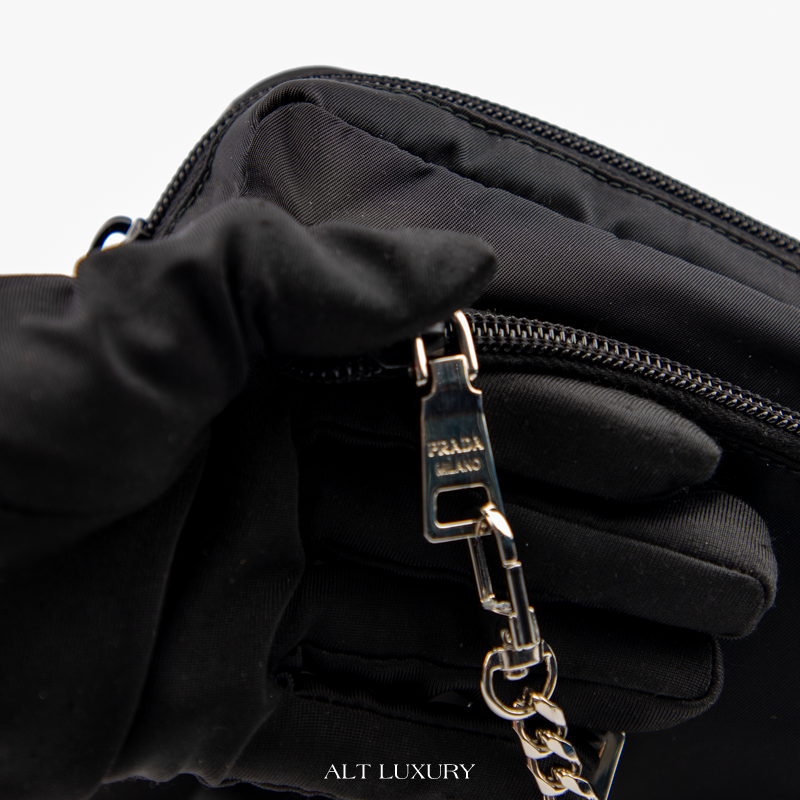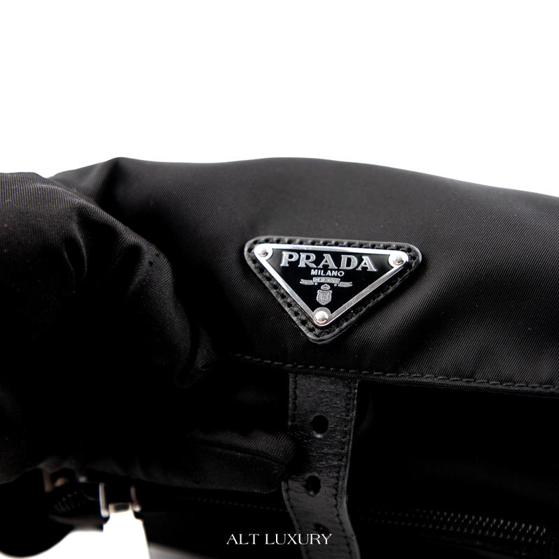 Prada belt bag, túi bao tử Prada, túi đeo hông Prada chính hãng, Prada nylon bag, Tessuto Prada, túi Prada đen unisex, túi Prada secondhand