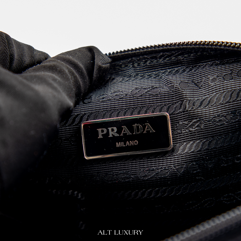 Thiết kế nhỏ gọn nhưng đủ sức chứa điện thoại, ví, chìa khóa và các vật dụng cần thiết cho một ngày năng động. Phần logo Prada tam giác kim loại đặt ở mặt trước chính là dấu ấn nhận diện thương hiệu nổi bật.